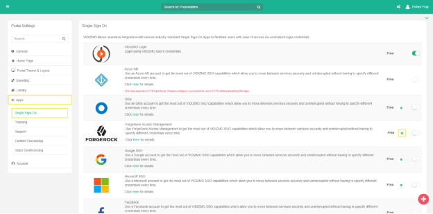 For more information about VIDIZMO SSO Apps, read Understanding Single Sign-On.