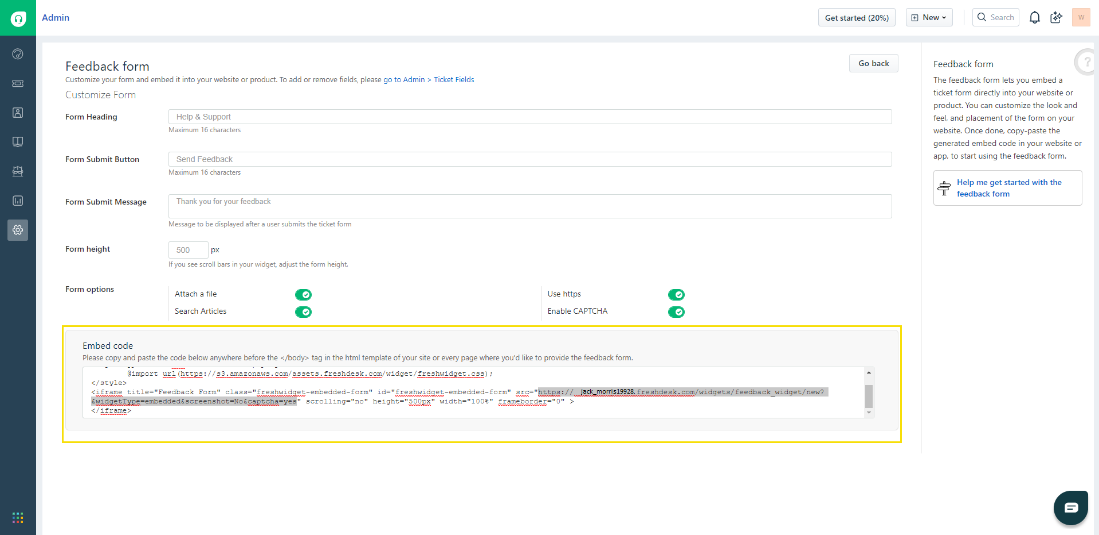NOTE: To know more about Freshdesk Feedback Forms, see Help me get started with the feedback form.