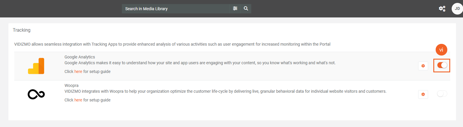 vi. Turn on the feature using the toggle button to enable Google Analytics tracking.