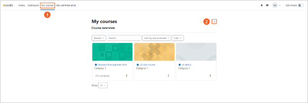 - Go to ‘My Courses' after logging in with a role that has permissions to edit courses.