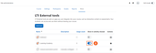 4. Navigate to the LTI App you have configured and enable it via the toggle.