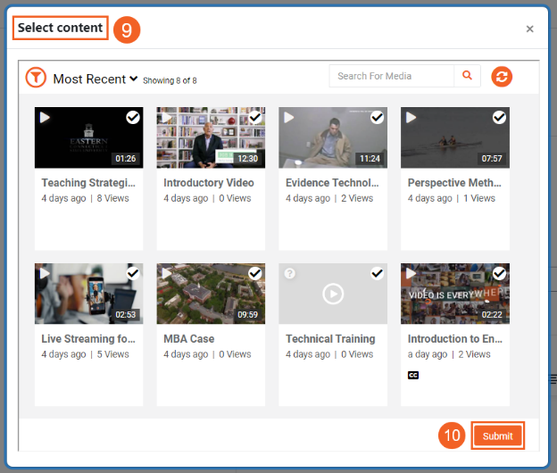 10. After you're done selecting the content you want to add, click the ‘Submit' button.