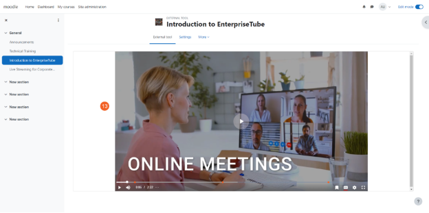 Once the integration is complete, you can utilize VIDIZMO Content in an LMS. As a demonstration, we will be adding content to a course in Moodle.