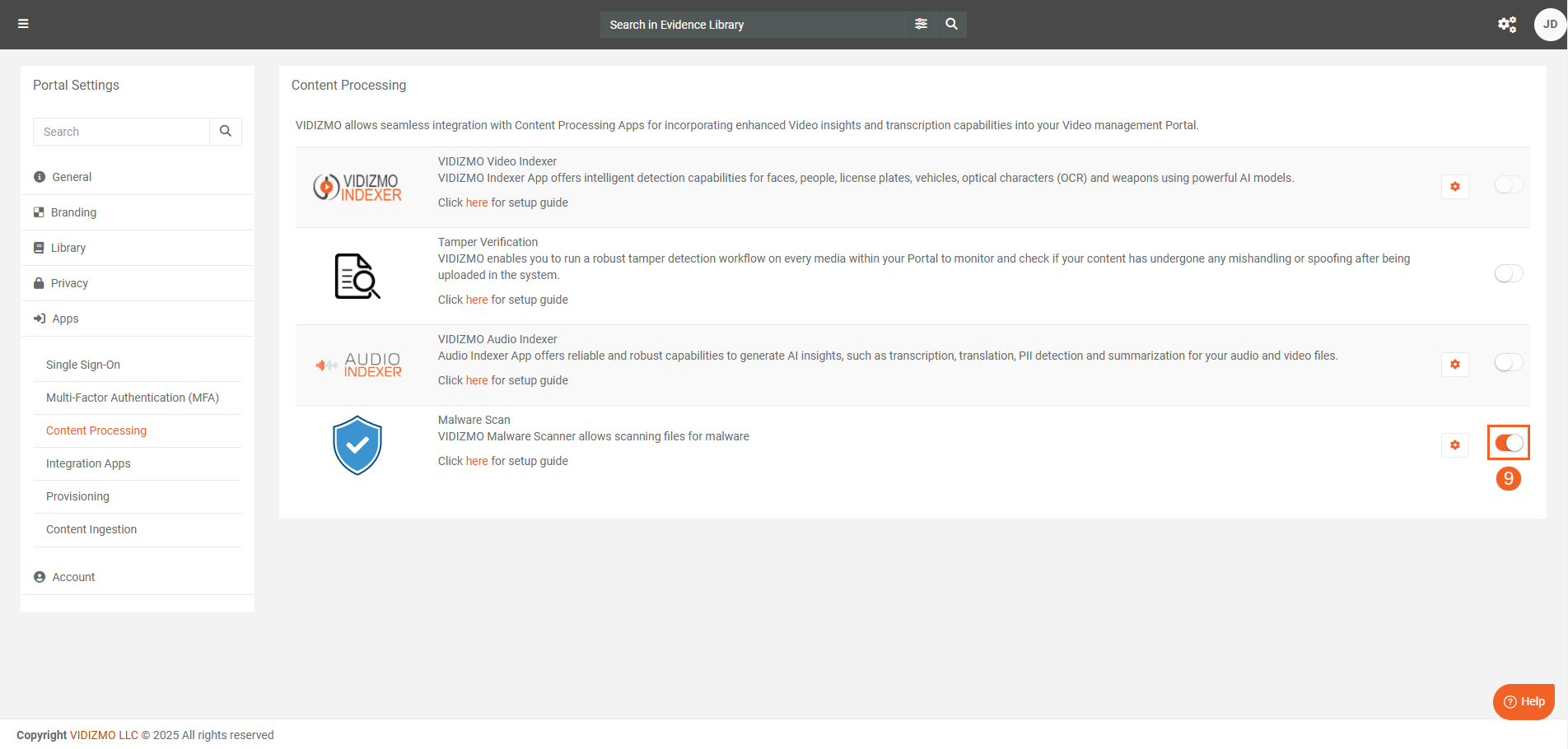 Configuring Malware Scan App in VIDIZMO