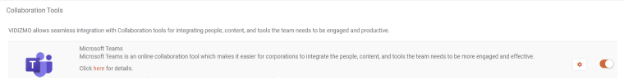 2. After configuring MS Teams App settings, go back to the Collaboration tools screen and toggle the button against settings icon to activate the MS Teams App in your portal.