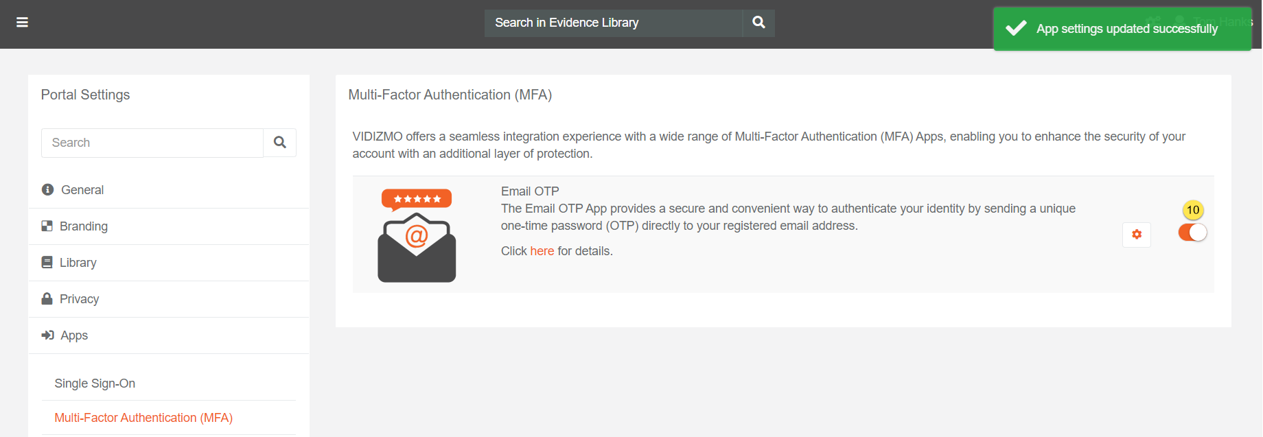 How to enable Email OTP App in VIDIZMO
