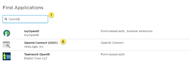 ii. From the list of search results, select OpenId Connect (OIDC).