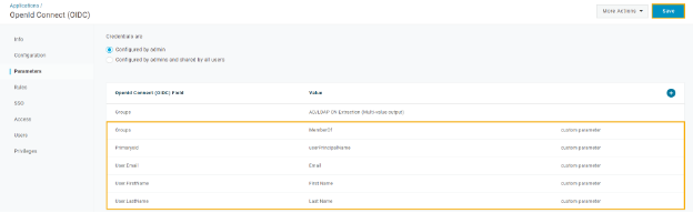 9. To map user data with VIDIZMO, some new parameters need to be defined in OneLogin. To do this, select the Parameters tab.