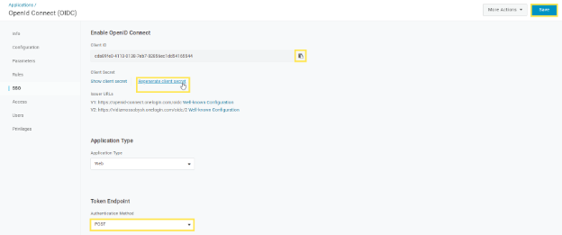 ii. Select Regenerate Client Secret to generate the client secret and then copy it for later use.