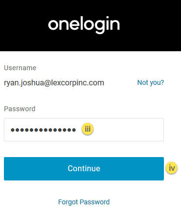 2. You will be redirected to the OneLogin screen.
