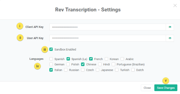 iii. Check Sandbox Enabled option to test the application for connection. Rev offers you human transcription facilities so before you are set to transcribe your original content, it is safe to test the integration using Sandbox account.