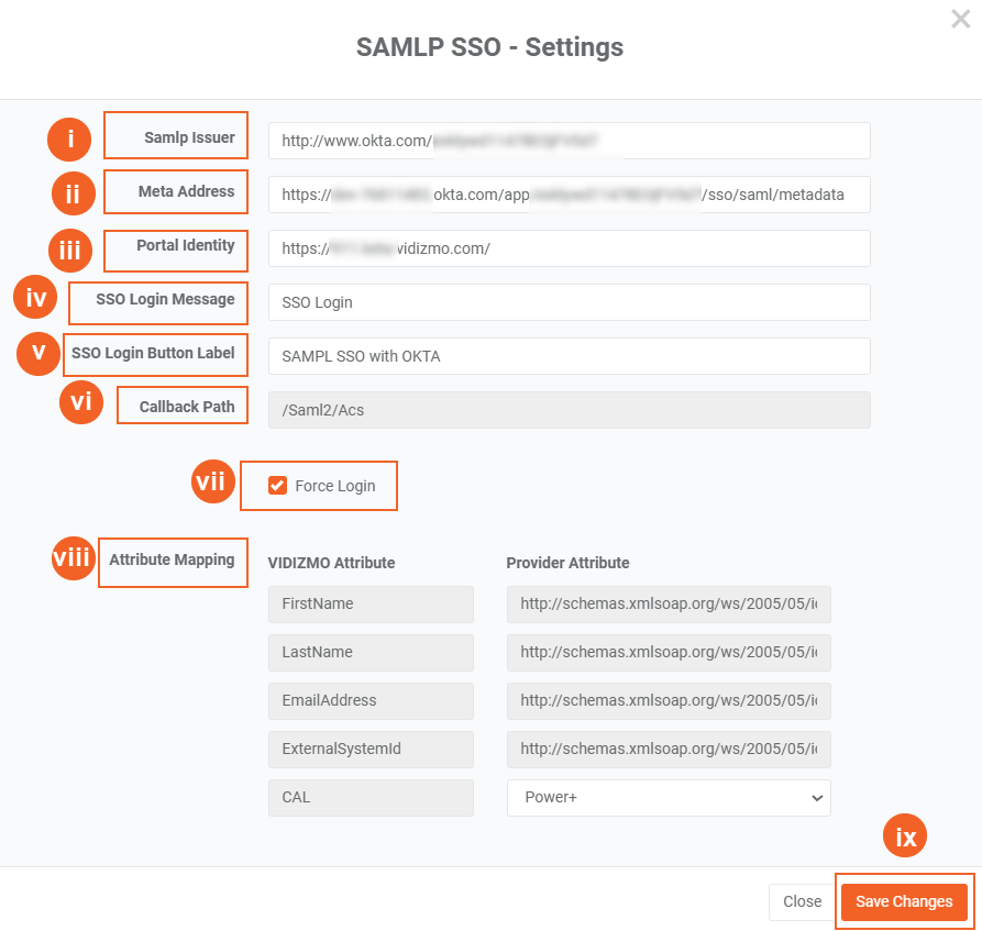 vii. Force Login: Select the checkbox to enable forced login and it will take you directly to Okta. When unchecked, it will not redirect automatically to the IdP and you will be required to sign in through your Portal's sign-in screen.