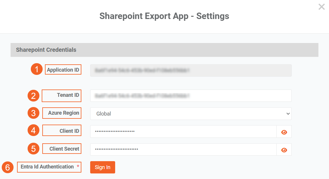 - Fill out the SharePoint Export App fields.