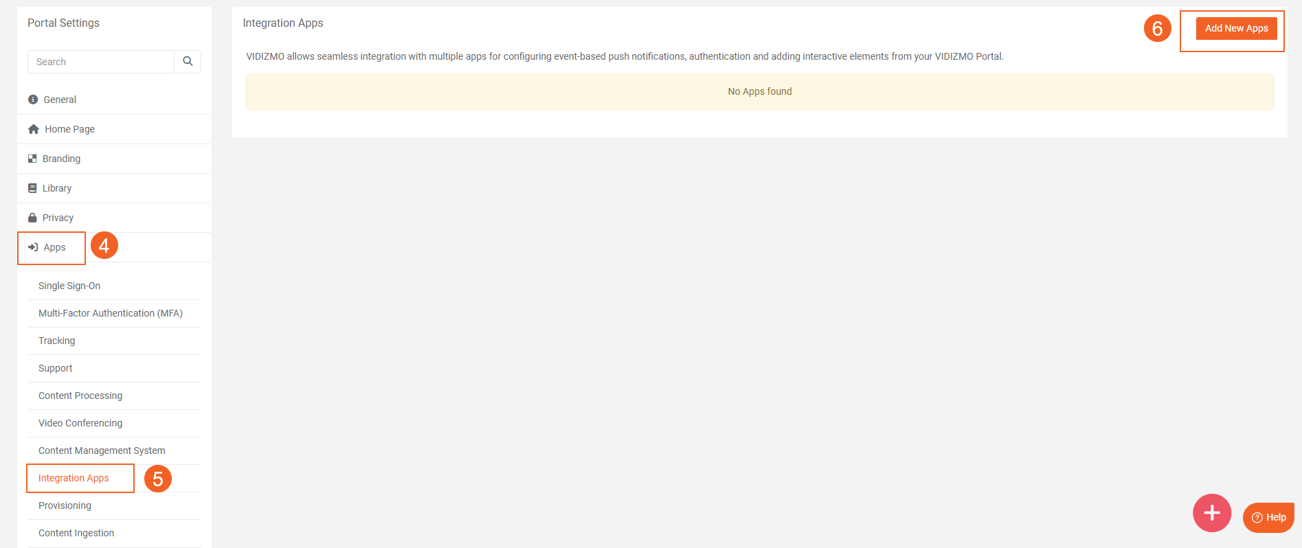 - In the Portal Settings, go to the Apps.
