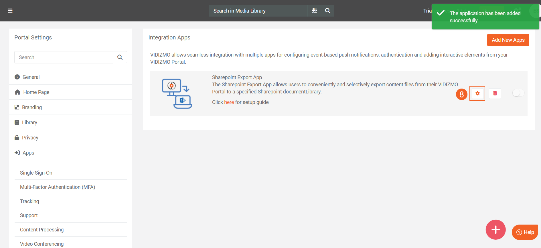 To configure the SharePoint App in the VIDIZMO portal, follow these steps.