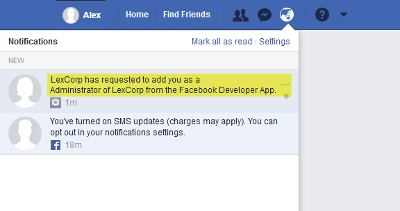 - The added user must accept the request from their Facebook account by clicking on the notification request.