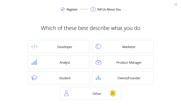 - A popup will appear: "Which of these best describe what you do?" Select an option.