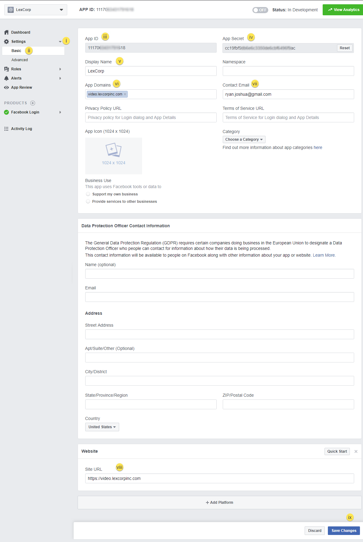 - Enter App Domains with the URL of your VIDIZMO portal.