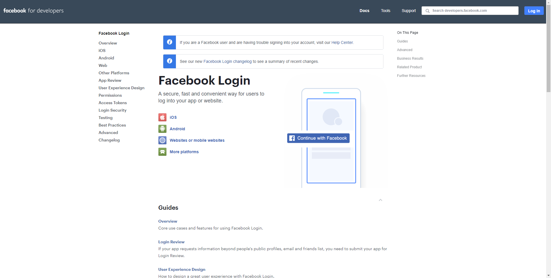Facebook offers reliable integration for Single Sign-On for all your web and mobile applications. The service offers a full-featured federation engine and flexible access policy. A user can log in with a single ID to gain access to a connected system or systems without being prompted to enter different usernames or passwords.