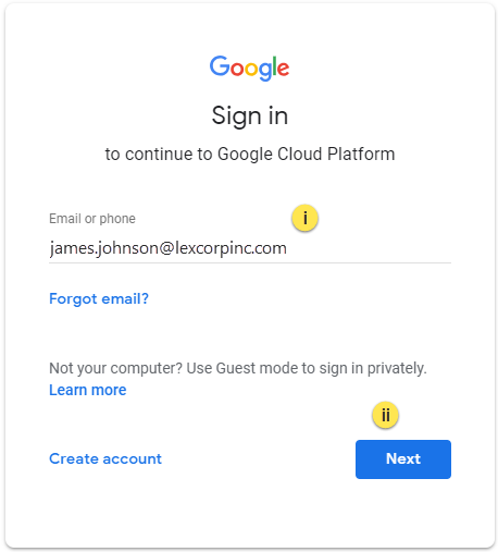 i. On the Sign In screen, enter the email address (or phone) you use to access your Google account.