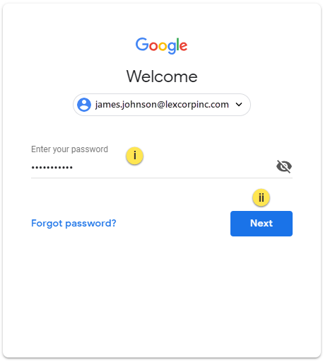i. Enter the password used for your account.