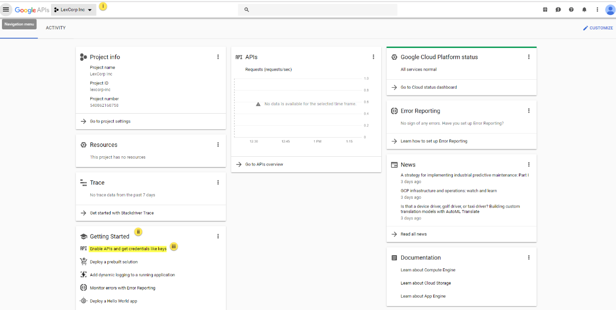 1. Click here on Google Cloud Platform to access the Google Developers Platform.