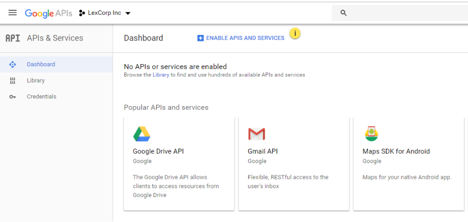 i. Click on the blue link + ENABLE APIS AND SERVICES.