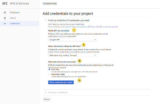 iv. And then click on the What credentials do I need? button to create an OAuth 2.0 client ID.