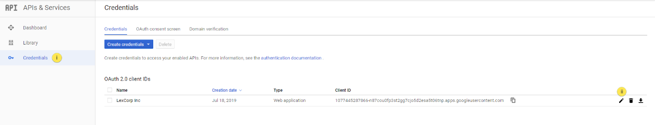 i. Click on the Credentials link under APIs & Services.