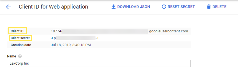 11. From the Client ID details screen, note down the Client ID and Client Secret for use when configuring Google SSO in your VIDIZMO Portal.