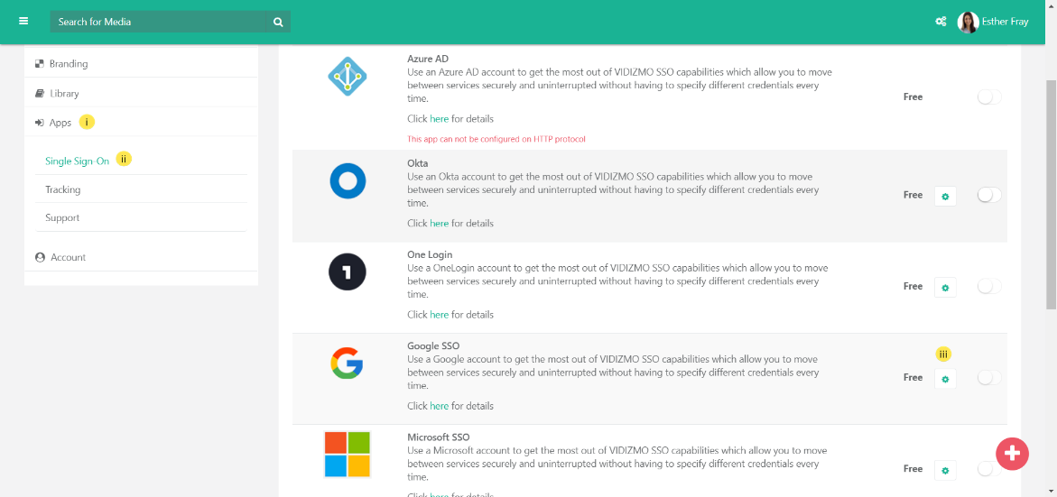 4. In order to activate SSO for Google: