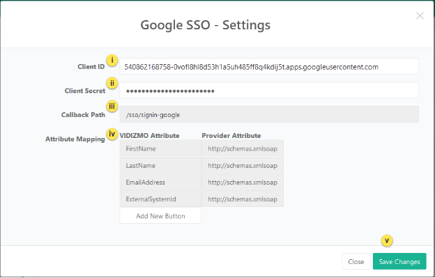 - After configuring and enabling Google SSO on your portal, you can disable default VIDIZMO login to restrict users to sign in using their Google credentials only. However, VIDIZMO Login will be enabled by default if all other configured SSO providers are disabled.