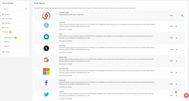 Single Sign-On (SSO) is a user authentication process that allows your users to sign in to multiple applications using the same set of login credentials. This allows ease of use for the end users and ease of management for administrators. VIDIZMO offers the most flexible options for you to integrate with a wide range of single sign-on authentication providers, including: