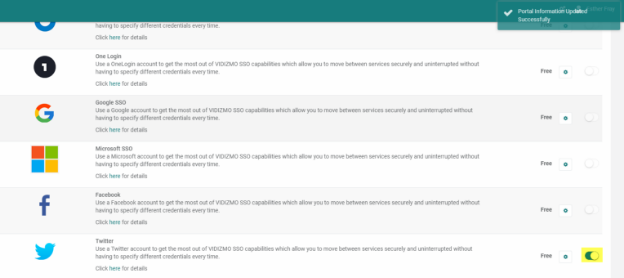 4. Once configured, you should Enable your X(Twitter) SSO. A brief notification appears stating Portal Information Updated Successfully.