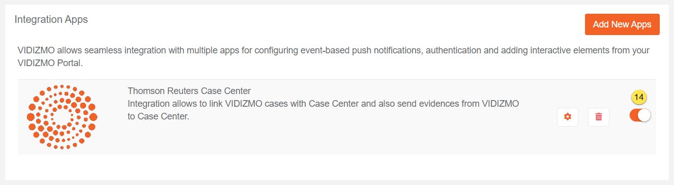If you want to know more about Thomson Reuters Case Center app in VIDIZMO then click on: Understanding VIDIZMO - Thomson Reuters Case Center Integration