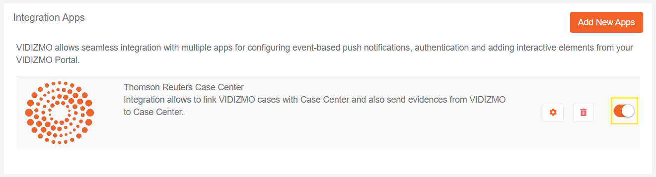 - You must integrate Thomson Reuters Case Center app in VIDIZMO.