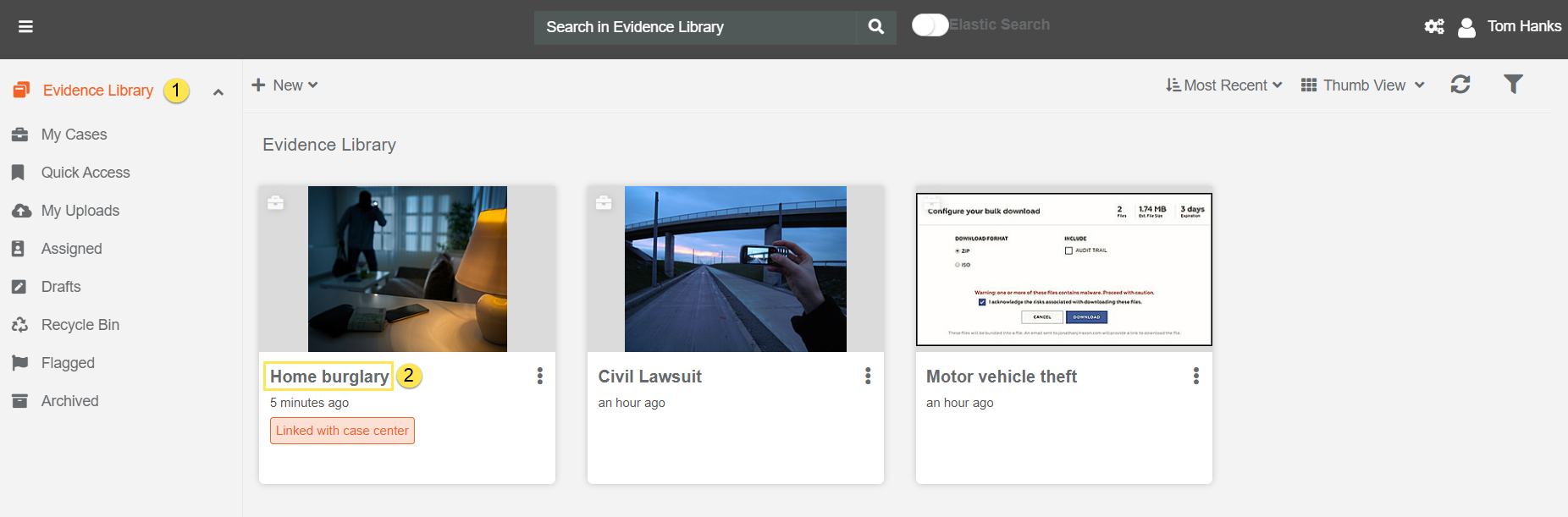 When Thomson Reuters Case Center App is enabled in VIDIZMO portal settings then we can link a VIDIZMO Case with Case Center Case. Follow the steps to link the case.