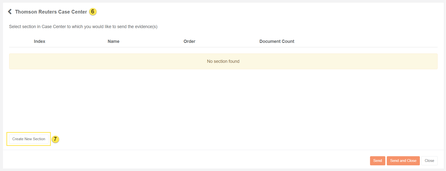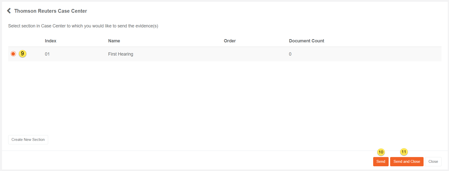 - Create a new Section in Thomson Reuters Case Center