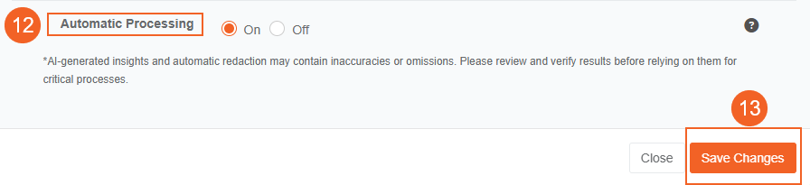 - Automatic Processing: Turn on automatic processing to redact PII as soon as content is uploaded in to your Portal.