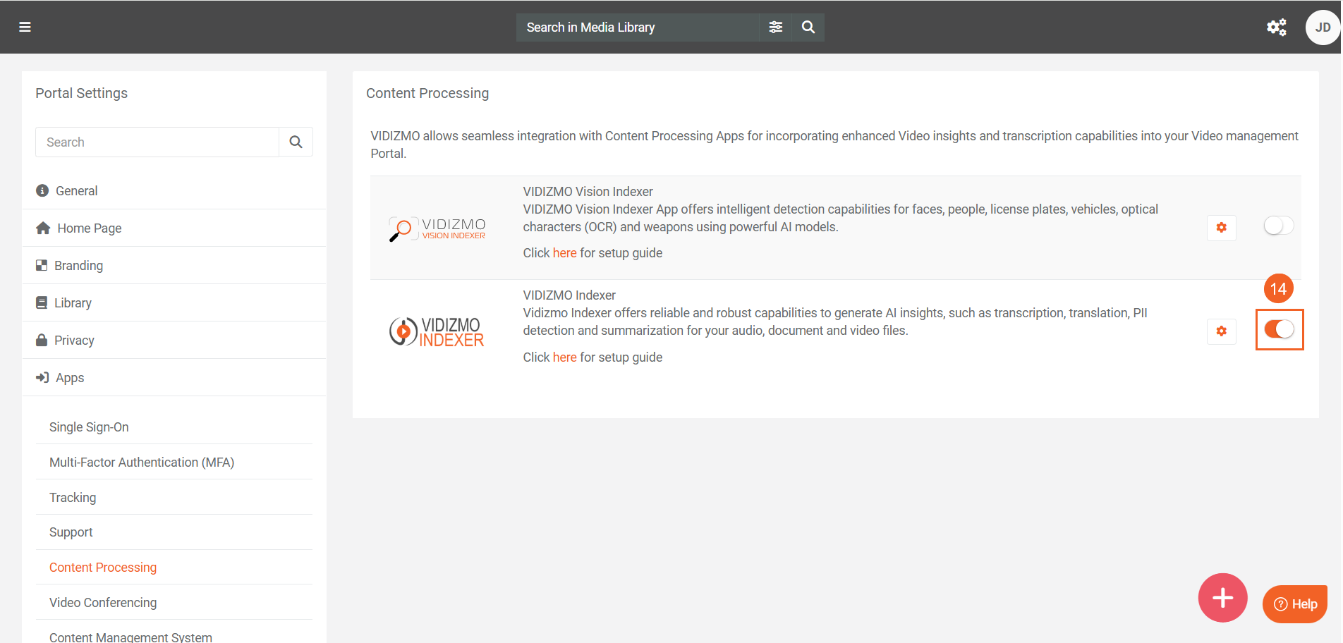 - Use other content-processing applications in VIDIZMO:
