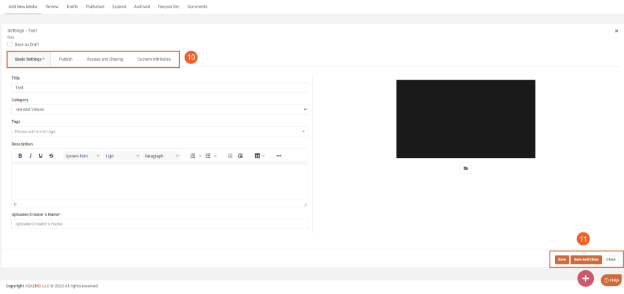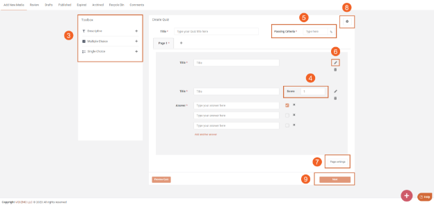 10. Customize media settings for your Quiz on this page. Options include sharing preferences, certificate template selection, adding a description, and more. For in-depth understanding, refer to "Understanding Media Settings."
