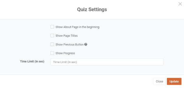 - Choose whether to "Show Page Titles" during the Quiz, displaying the title of each page to the users.