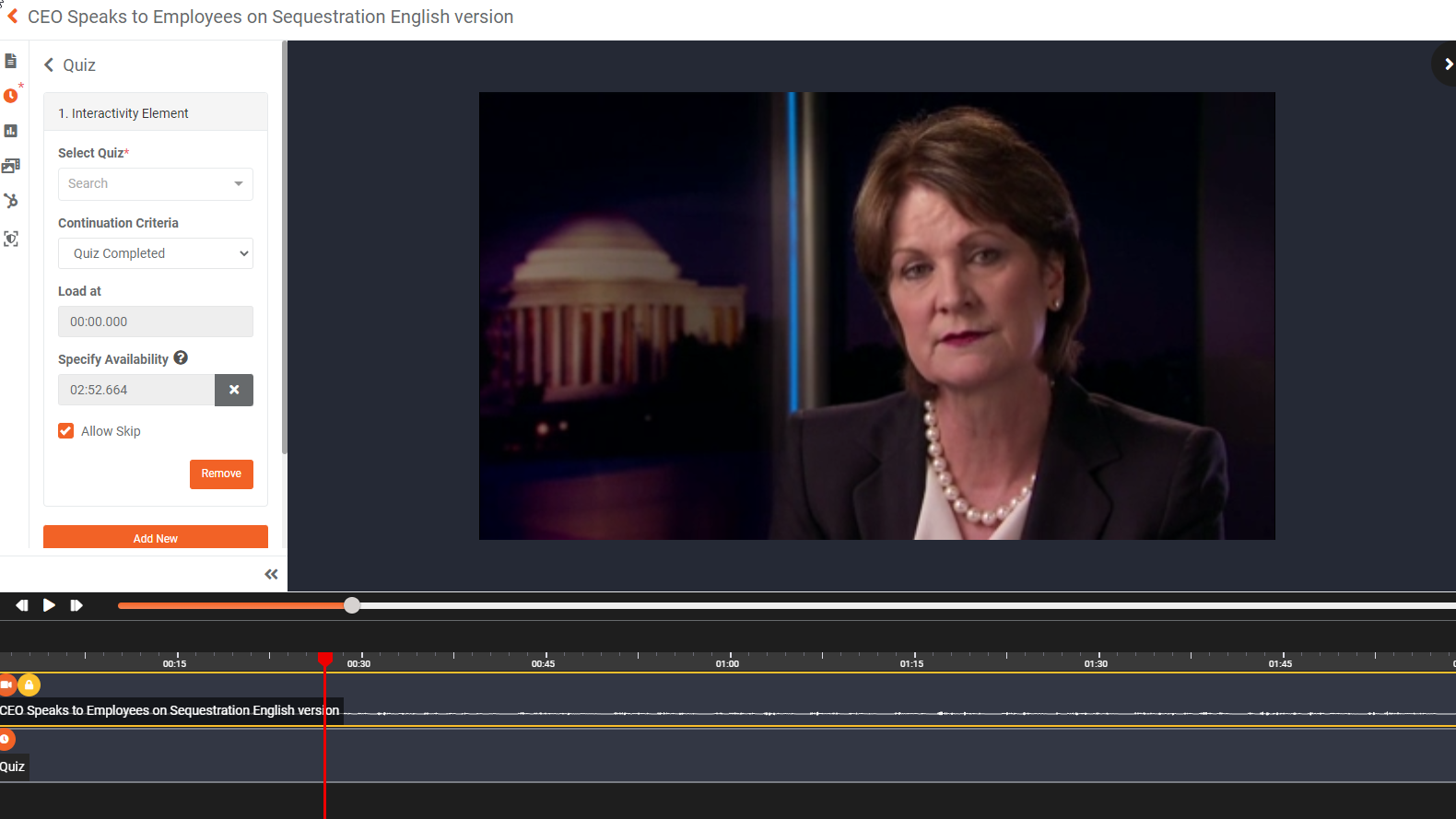 5. Similarly, to ensure that the quiz is unobstructive during a viewer's experience, there is an Allow Skip option for designers to allow users to skip for seamless video streaming.