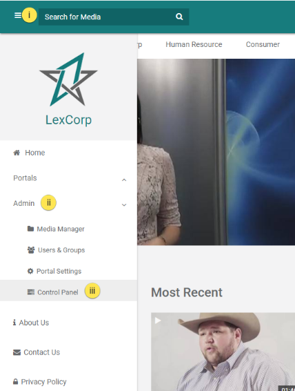 i. Click on the navigation menu on the top left of your screen. ii. Expand Admin tab. iii. Select Control Panel