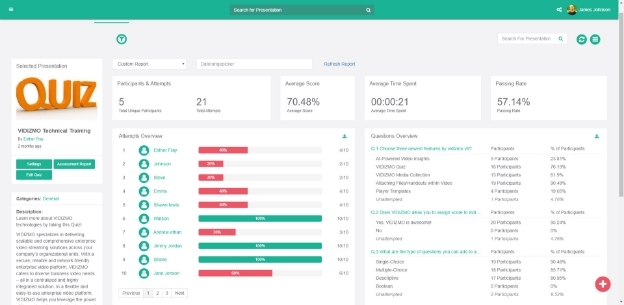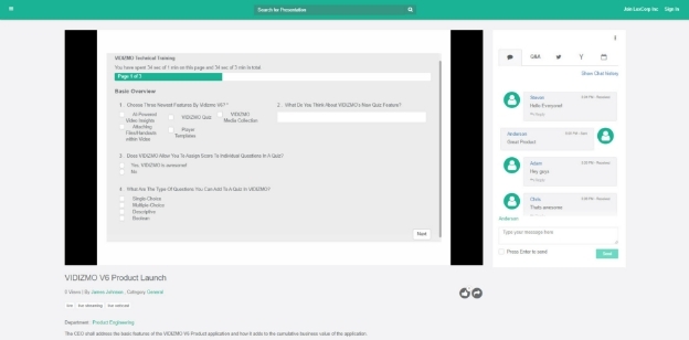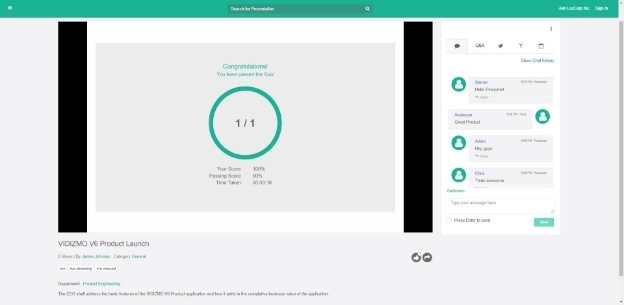 Now with VIDIZMO Quizzes, you can publish interactive Quizzes during a Live Stream for your audience right after you finish explaining a product feature, or conceptual topic to gauge your audience's understanding of the content and crunch the right numbers to substantially improve session-planning strategies.