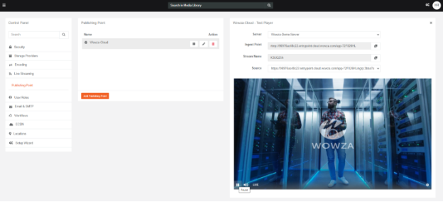 - To preview your Live Streaming before publishing it, go to Control Panel >> Publishing Point. It will look like example shown below: