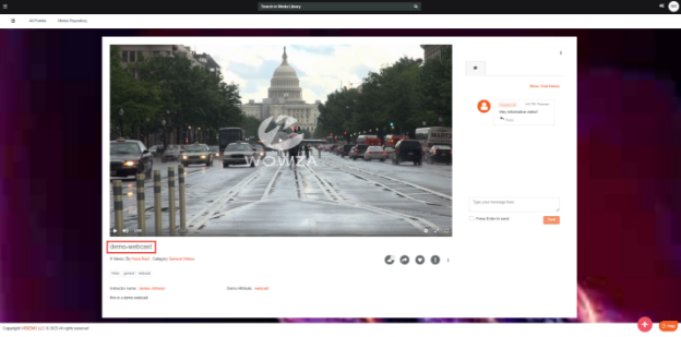 - Proceed by clicking on the live streaming to access the Video Playback screen, where you will be able to join the Live Streaming. We have integrated interactivity elements into the webcast, including a live chat feature that allows viewers to engage by posting comments. You can learn more on the interactivity options during a live stream through this article: How to Enable Interactivity Options in a Live Session