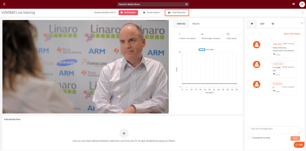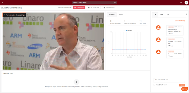 During the session, VIDIZMO provides various different functions to engage users better with the ongoing live session. Some of them are: