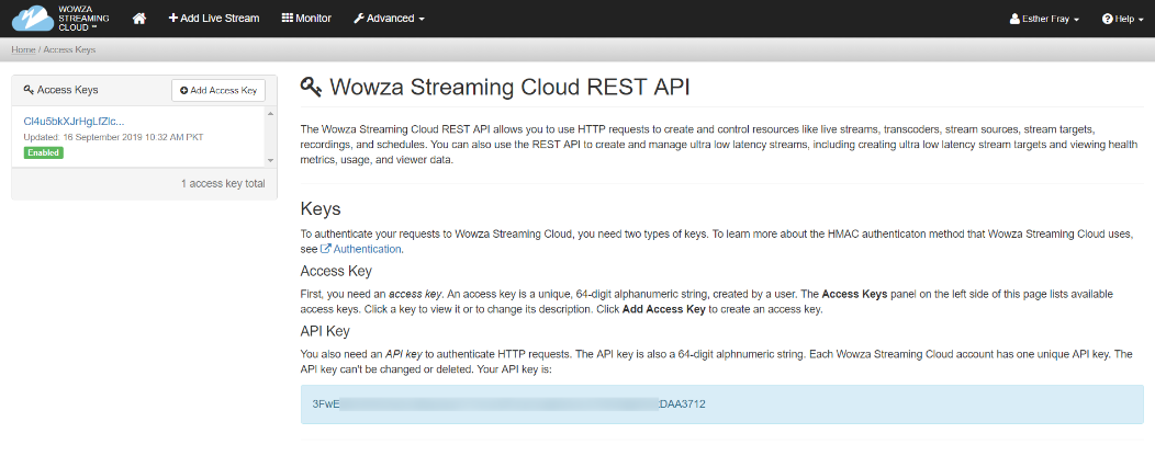 Here, you need to follow the steps in this article to configure a Wowza Streaming Cloud ECDN node using the API Key and Access Key that you obtained from above.