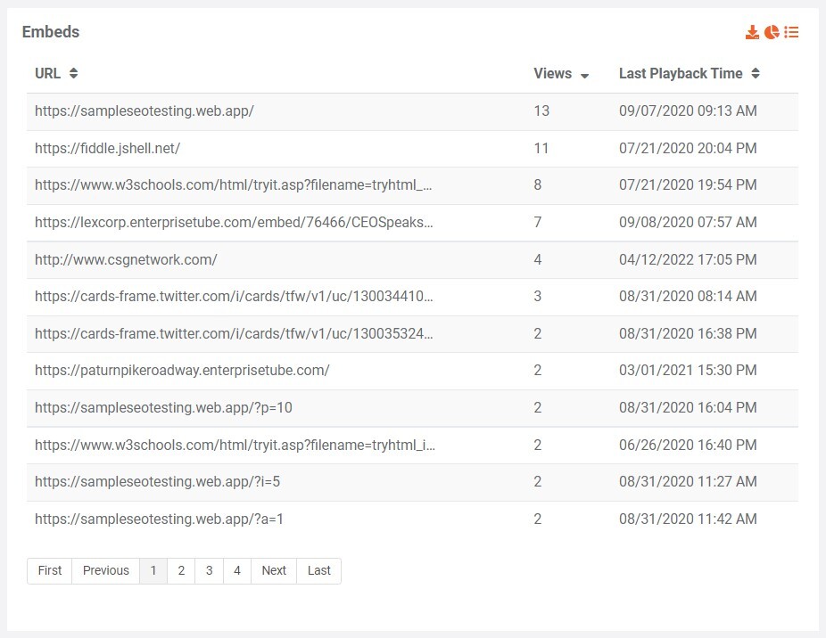 - Views: This denotes the total number of views for the video. There could be multiple views from a single viewer.